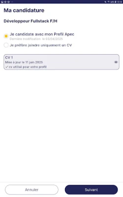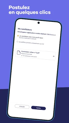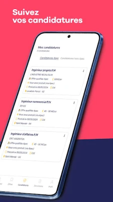 Avec Apec, optimisez chaque étape de votre recherche grâce à des fonctionnalités pensées pour vous. Affinez vos explorations en quelques gestes, en filtrant par domaine d'activité, fonction, niveau de rémunération souhaité ou type de contrat, qu'il s'agisse de CDI, CDD, alternance ou intérim. Découvrez les postes à proximité grâce à la géolocalisation intelligente et sauvegardez vos annonces coup de cœur dans vos favoris. De plus, mémorisez vos critères de recherche pour les reconsulter à tout moment, que ce soit sur l'application Apec ou via le site apec.fr. La soumission de candidatures devient un jeu d'enfant grâce à la fonction "postuler en un clic" avec votre CV personnalisé, accompagnée d'un suivi transparent et d'alertes sur mesure pour ne manquer aucune occasion.