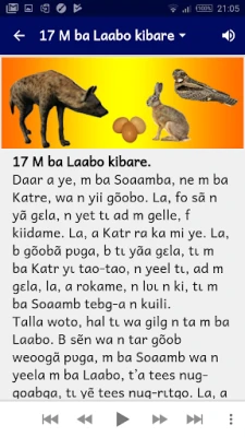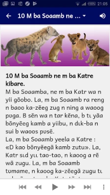 Découvrez dix-huit contes captivants en mooré. Cette application unique offre une expérience immersive où vous pouvez suivre l'audio et le texte simultanément, pour une découverte enrichissante de la culture et de la langue.