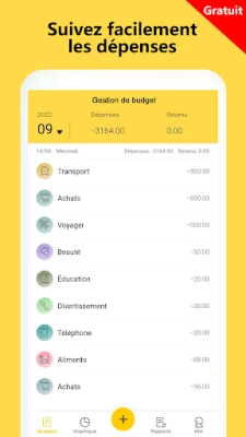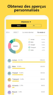 La personnalisation est au cœur de l'expérience offerte par Gestion de budget. Explorez des rapports détaillés, segmentés par période ou par catégorie, et organisez vos données comme bon vous semble, que ce soit par date ou par montant. Que vous utilisiez des catégories prédéfinies comme les dépenses d'épicerie ou les factures de services publics, ou que vous créiez les vôtres avec des couleurs personnalisées, l'application s'adapte à votre mode de vie unique. De plus, ne manquez jamais un paiement important grâce aux rappels configurables pour vos échéances régulières – qu'il s'agisse de remboursements de crédit, de dettes ou de revenus récurrents.