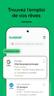 Découvrez Glassdoor, la vaste communauté de l'emploi. Accédez à des milliers d'offres, des avis d'employés et des rapports de salaires précis. Explorez les entreprises, évaluez votre potentiel de salaire et les avantages. Trouvez votre prochain poste idéal grâce à des informations authentiques partagées par des employés du monde entier.