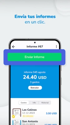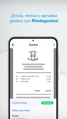 Avec Rindegastos, la digitalisation de vos justificatifs est un jeu d'enfant. Capturez instantanément une photo de vos reçus, et l'application s'occupe de l'archivage sécurisé et numérique, éliminant le risque de perte ou d'oubli. Enregistrez rapidement chaque dépense en quelques touches, assurant une traçabilité impeccable et une saisie des données sans effort. Fini les délais et les rapports qui traînent : vos notes de frais sont transmises en temps réel au flux d'approbation, garantissant une progression immédiate et une visibilité constante sur l'état de chaque demande.