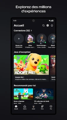 Roblox est l'univers virtuel ultime où tu crées, partages et es tout ce que tu imagines. Rejoins des millions de joueurs et explore une infinité d'expériences immersives, toutes conçues par une communauté mondiale passionnée. Découvre le métaverse infini de Roblox.