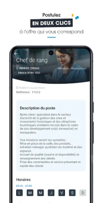 Conçue pour les candidats, notre plateforme intuitive vous permet de créer un profil complet en quelques minutes, d'y télécharger votre CV et de recevoir des propositions d'emploi véritablement adaptées à vos compétences. Ne manquez jamais une offre pertinente grâce à des alertes personnalisées basées sur vos critères précis. Suivez l'évolution de toutes vos candidatures en temps réel et consultez votre historique détaillé. Gérez vos disponibilités sans effort et visualisez toutes vos futures missions grâce à un calendrier intégré, tout en bénéficiant d'un accès direct à l'agence Samsic Emploi la plus proche pour un suivi expert et personnalisé.